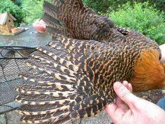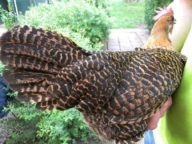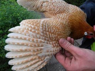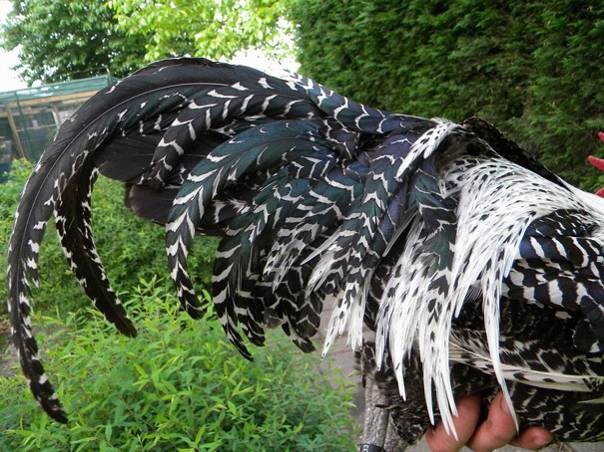 Kuldse brakel bantam kuke (vasak) ja hõbedase brakel kuke (parem) tõuomane sabamuster.