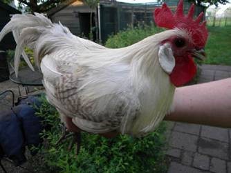 Ülalpool: Valgejutiline kuldne brakel bantam kukk.