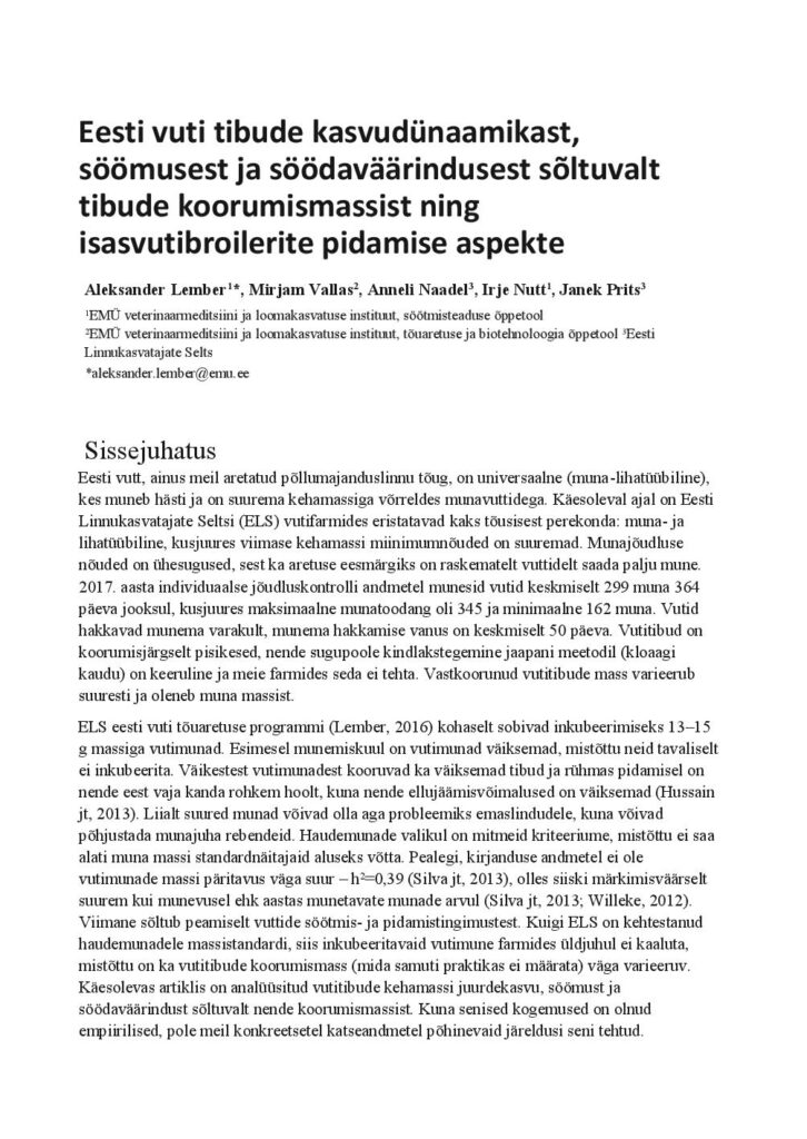 Eesti vuti tibude kasvudünaamika